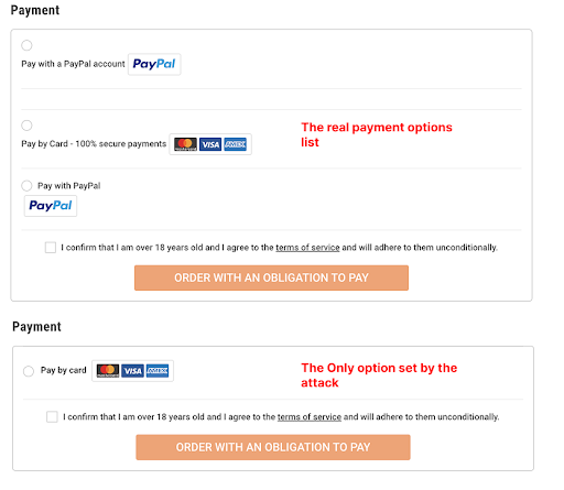 4. Payment-UI substitution The injected code removes the site’s normal list of payment methods and inserts only a fake “credit card” option under the attacker’s control. This forces the victim to submit card data through the malicious flow. See below images which display the original form that includes the option of PayPal and the fake one underneath with only one option – the malicious one which captures the credit card details. 5. Fake payment form When the user selects the (fake) payment option, a bogus payment form is displayed, mimicking the legitimate UI. 6. Skimming & exfiltration The attack captures card number, expiry, CVC, etc., performs client-side base64 encoding, then POSTs to an attacker endpoint, thisisourplace[.]site/cdn/verify. 7. Fake verification UI = social engineering, not additional exfil After submission the site shows a 5-digit “verification code” modal (five single-char inputs), as seen below. Our analysis finds no code path that transmits those digits to the attacker — the inputs only perform client-side validation. We infer that this modal’s purpose is to: a) Make the transaction look legitimate. b) Delay the user from checking bank/card activity immediately. c) Give the attacker time to complete any page-unload exfiltration. How Source Defense would detect & block this